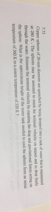 Solved 7 73 Copper Spheres Of 20 Mm Diameter Are Quenched By Chegg Com