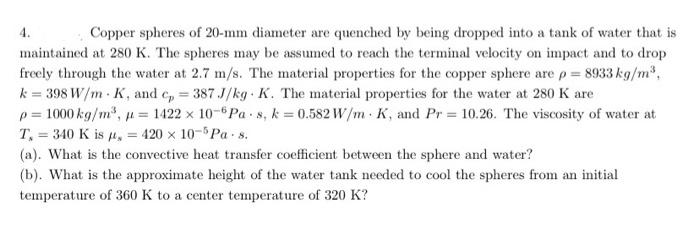 Solved A Copper Spheres Of 20 Mm Diameter Are Quenched By Chegg Com